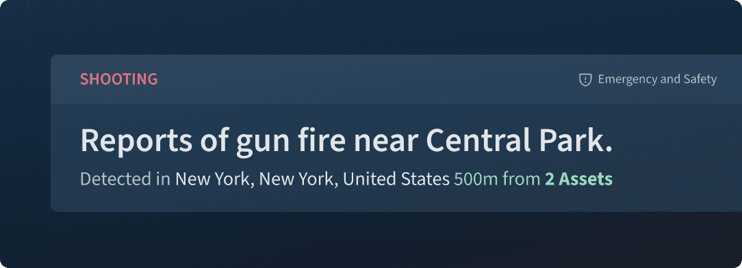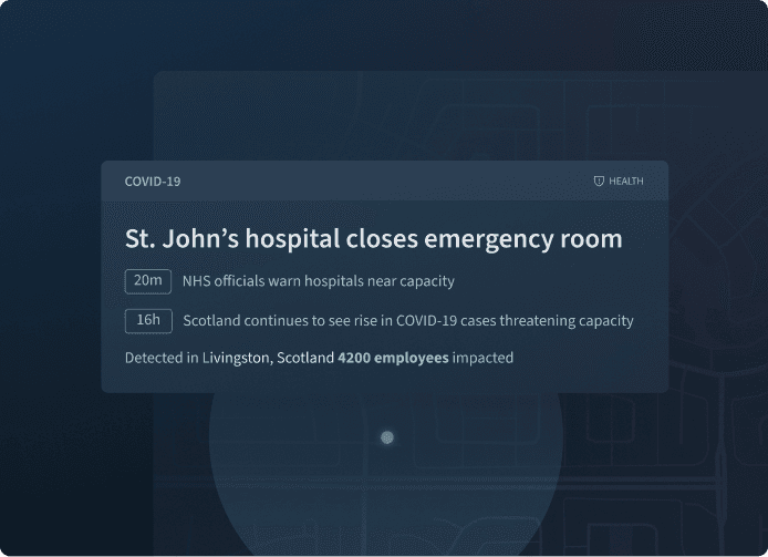 Our AI performs billions of computations on public data sets to spot disruptive events. We send you early warning alerts and insights, well ahead of traditional news and crisis monitoring tools.